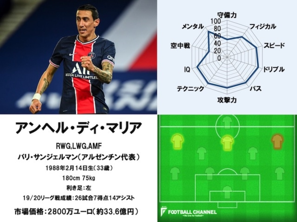 21サッカー選手能力値ランキング76位 Mfアンヘル ディ マリア パリ サンジェルマン フットボールチャンネル